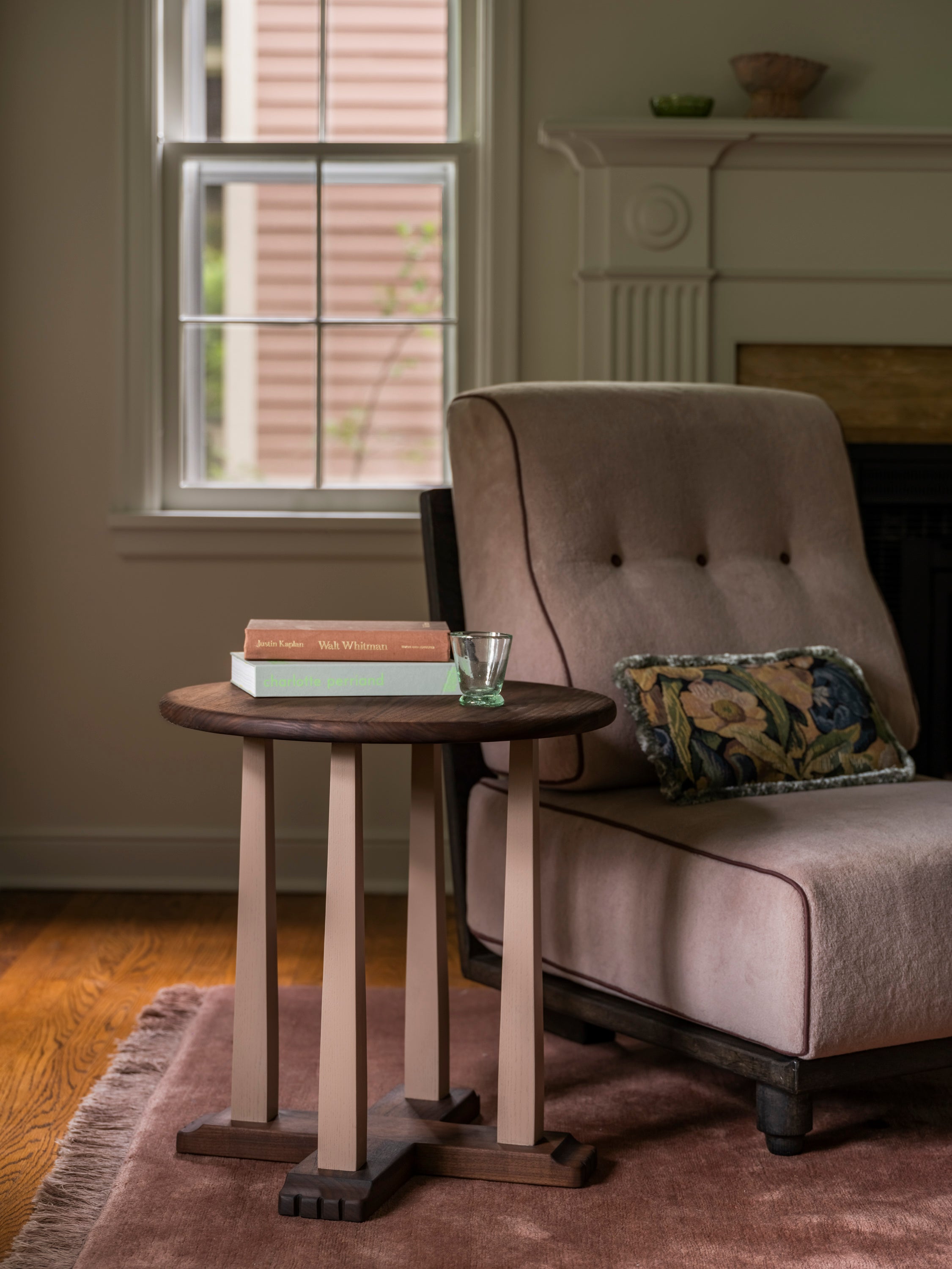 A study in contrast and craftsmanship, the Onder side table brings a sculptural presence to any space. Its elegantly tapered legs—available in either a contrasting finish or matched to the top and base for a seamless look—lend a distinctive character, while the paw-like feet add a touch of whimsy to its poised silhouette. Ideal as a statement piece beside a sofa or guest bed.