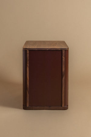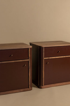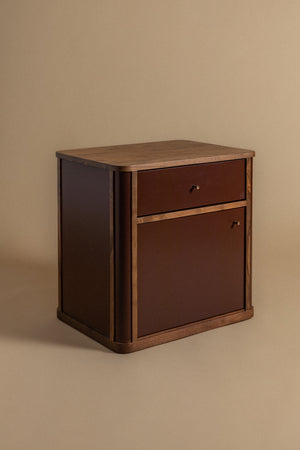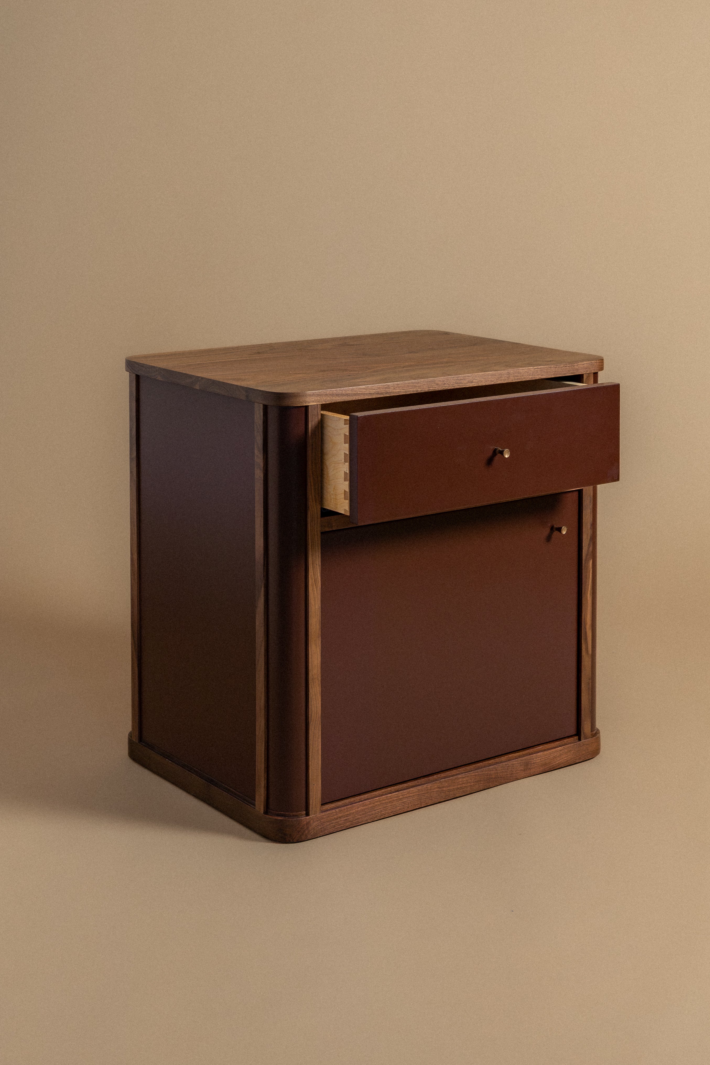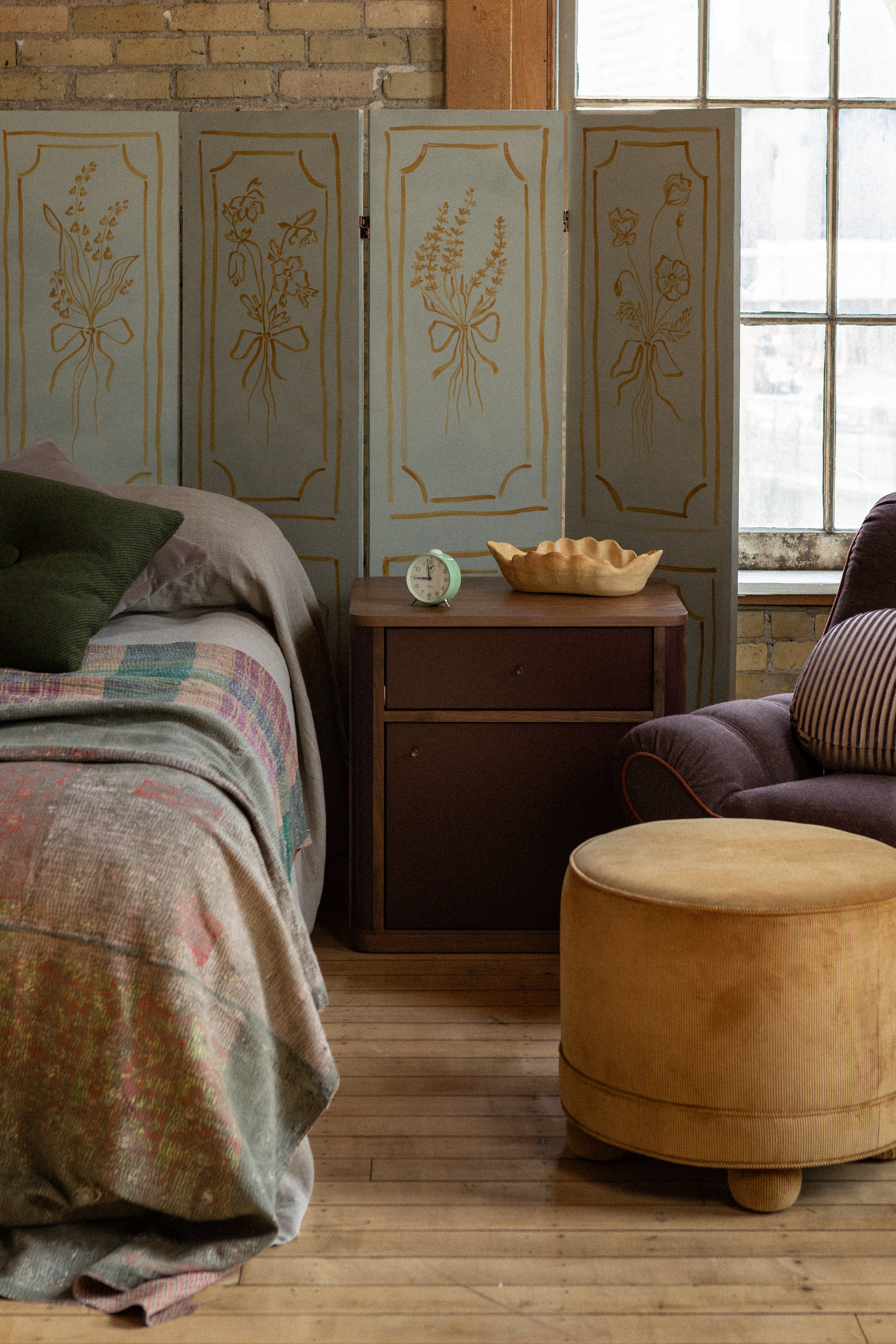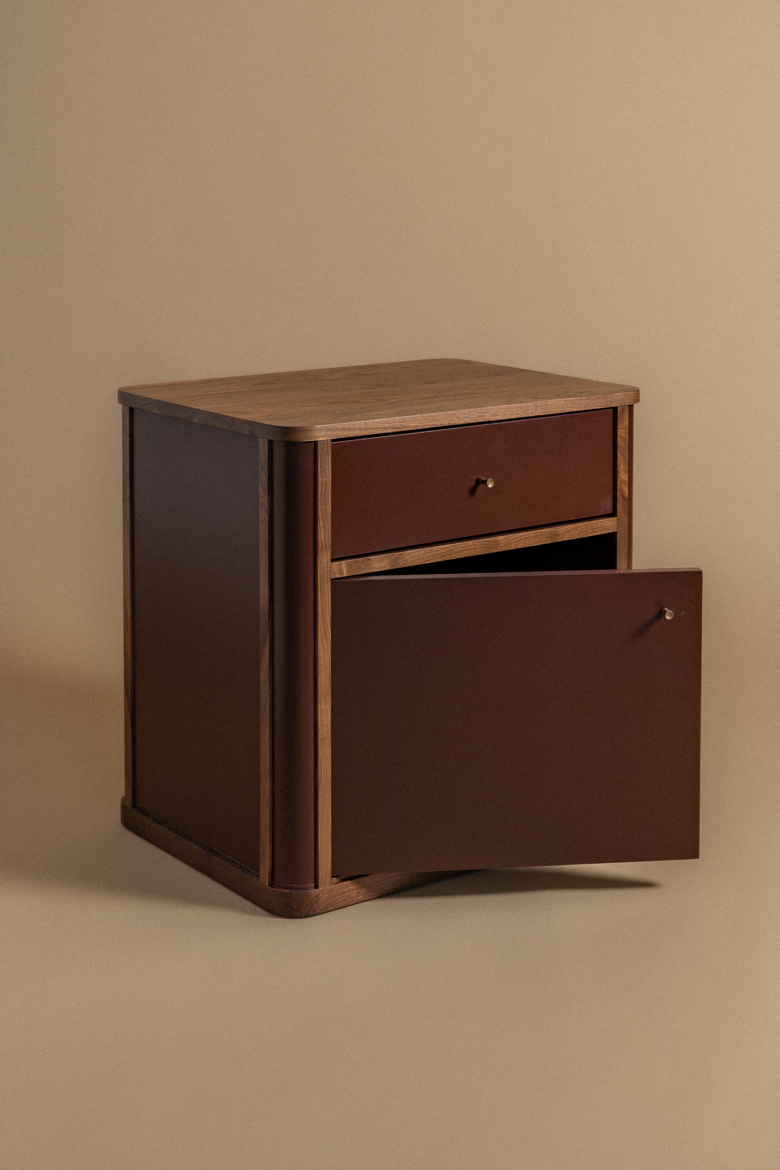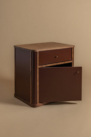 The Viletta nightstand strikes the perfect balance between form and function, showcasing a sophisticated mix of customizable paint and wood finishes. With a rounded silhouette, a soft-close drawer, and a discreet door for hidden storage, it’s designed to bring a quiet charm to any bedroom. Features hand-cast hardware in bronze, each knob is unique in shape and will patina over time.