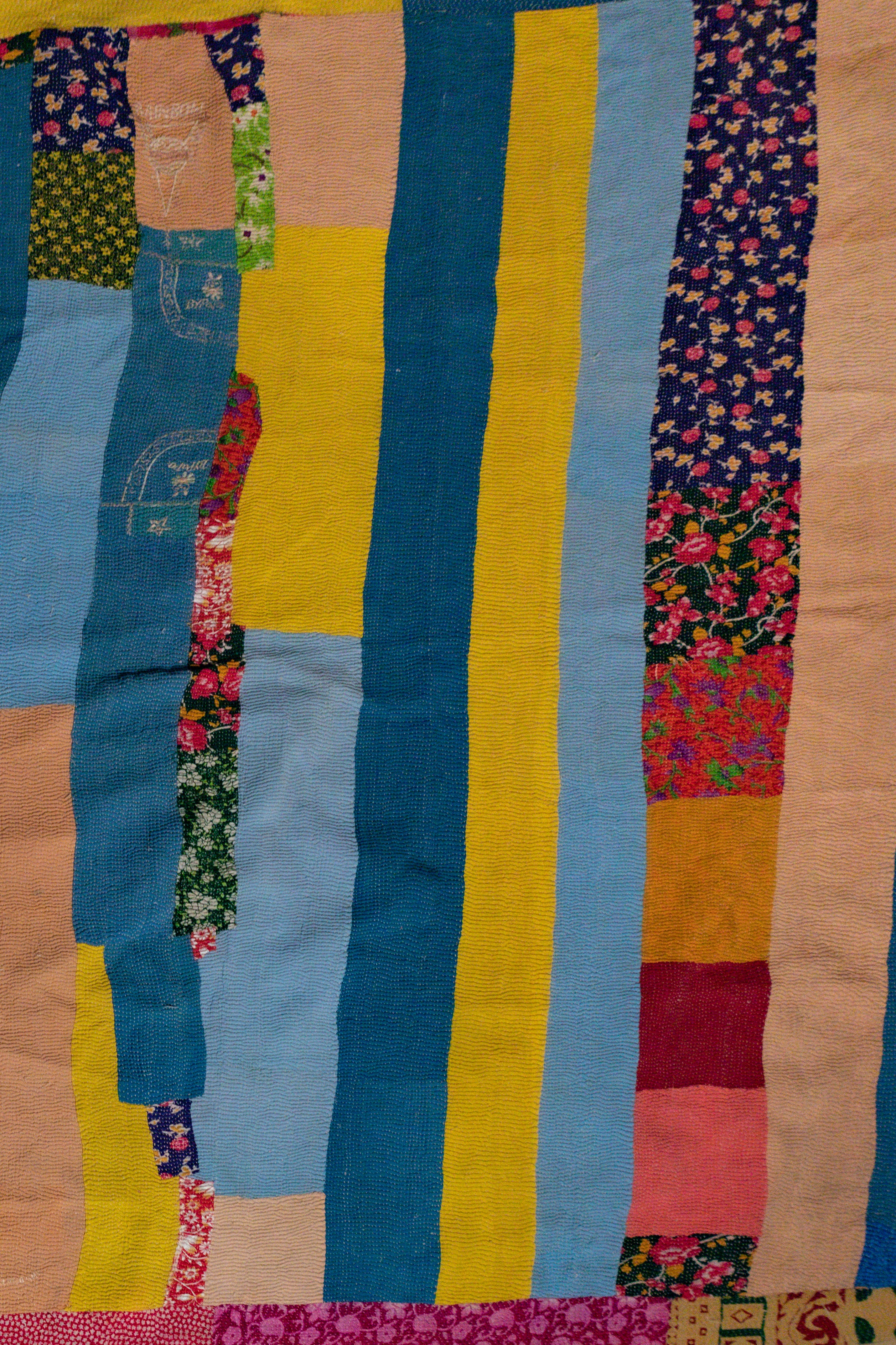 Every quilt carries its own story—woven with vibrant colors, bold stripes, and subtle imperfections that celebrate the beauty of handmade artistry. No two quilts are ever the same, making each one a one-of-a-kind treasure. Perfect as a cozy throw, or even a wall hanging, these vintage Kantha quilts bring warmth, history, and character into any space.